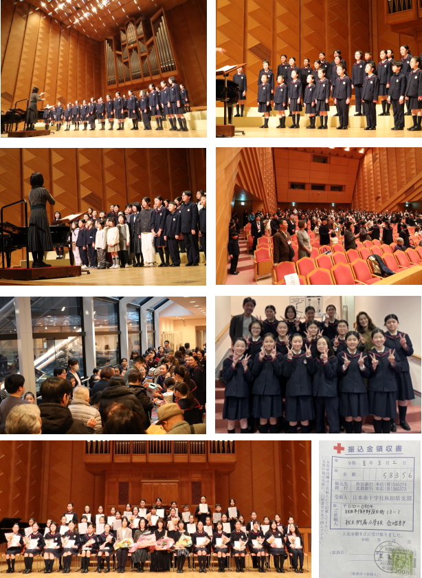 合唱部では、社会に貢献する活動の一環として、3月1日にアトリオン音楽ホールでチャリティーコンサートを開催しました。